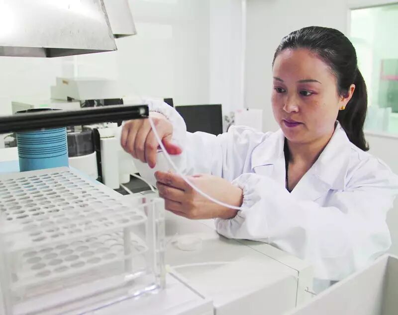 △质检所工作人员正在利用原子荧光光谱法检测硒产品中的硒含量