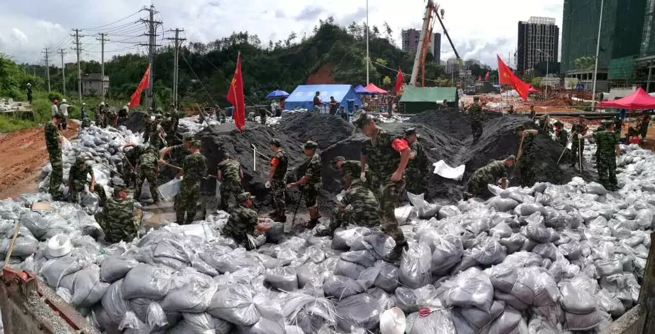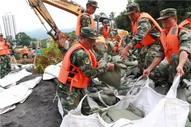 自7月12号凌晨,恩施市六角亭街道办事处松树坪村虎民路涵洞受堵,造成道堰湾多户居民房屋积水事件发生后。7月14日至7月16日,恩施州武警支队、恩施州消防支队紧急组织两百余名官兵,开展排险工作。今天(7月16日),烈日高照,酷暑难当。恩施市虎民路泄洪涵洞受堵排险现场,恩施武警、消防官兵挥汗如雨,装运沙袋、围堰筑坝。