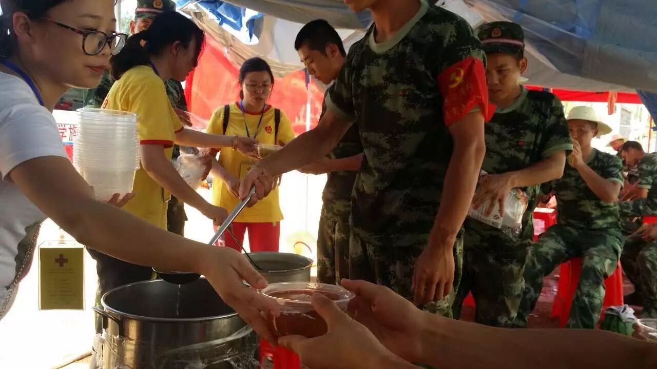 今天(7月16日),周六,恩施市义工协会、恩施红十字心理救援队、民大医院卫生应急先锋队,及周边群众组成志愿队,自发与武警、消防官兵抗洪排险,并为官兵们送来矿泉水、西瓜、绿豆汤等降署物品,还暖心地为官兵们准备了毛巾和药品。