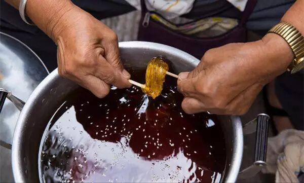 △每次放学看见校门口卖搅搅糖的都会忍不住去买一只。卖糖的婆婆,拿两根竹签签一搅就好了。(那是大多数70、80后童年的“棒棒糖”啊!)