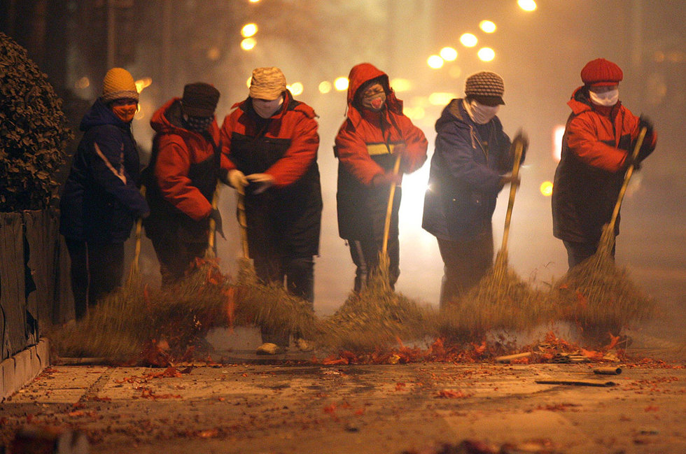 为了给环卫工人创造更安全的工作环境,减少他们遭遇交通事故的可能,环卫处为所有环卫工人购置了新的环卫标志服,新标志服上的反光条更加醒目,并多次组织交通安全会,为环卫工人普及、讲解交通安全知识。近几年,环卫保洁工作的机械化程度越来越高,城区主干道的清扫保洁工作基本上都是通过洒水车、洗扫车等环卫车辆的组合作业完成。这在很大程度上减轻了环卫工人的工作量,也使得环卫工人一般情况下不再需要去道路中间进行清扫。
