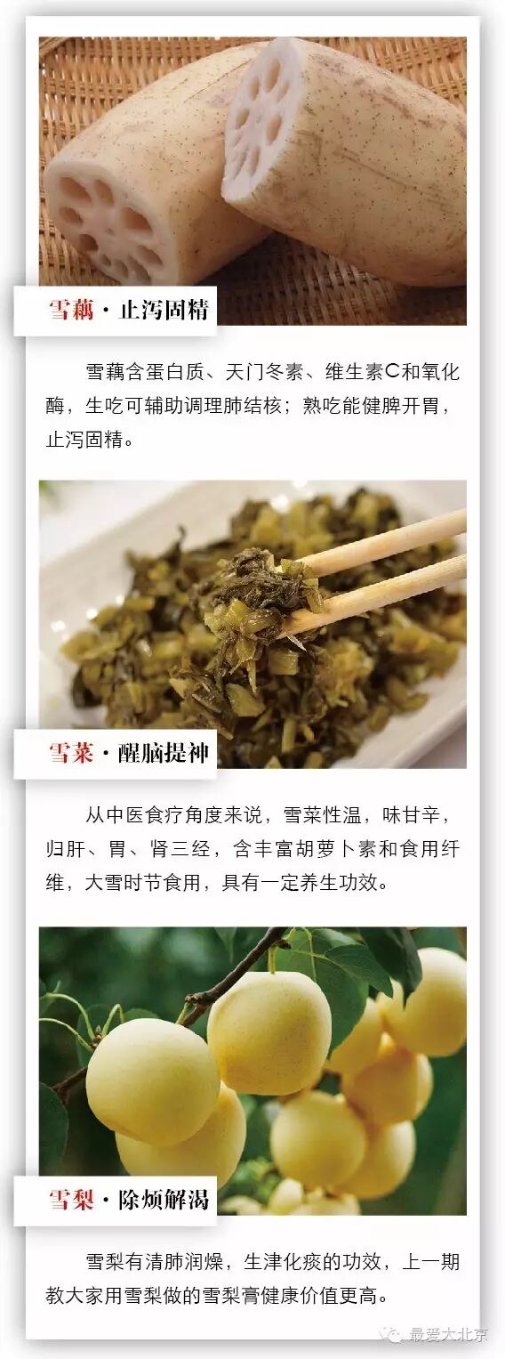 大雪期间,空气干燥,多吃点大白菜可护肤养颜。白菜含丰富粗纤维,能润肠、促排毒,又刺激肠胃蠕动,利于大便排泄,助消化。