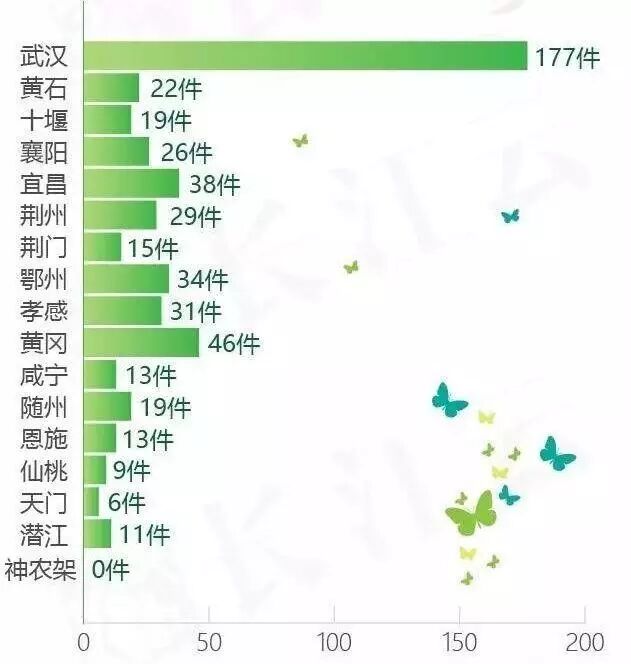 11月26日,中央第三环境保护督察组进驻湖北省开展环境保护督察工作。11月27日至12月5日,督察组平均每天接到环境信访件超50件,共反应湖北各地水、大气、噪声等环境污染问题509起,办结环境信访件138件,约谈问责干部52人。