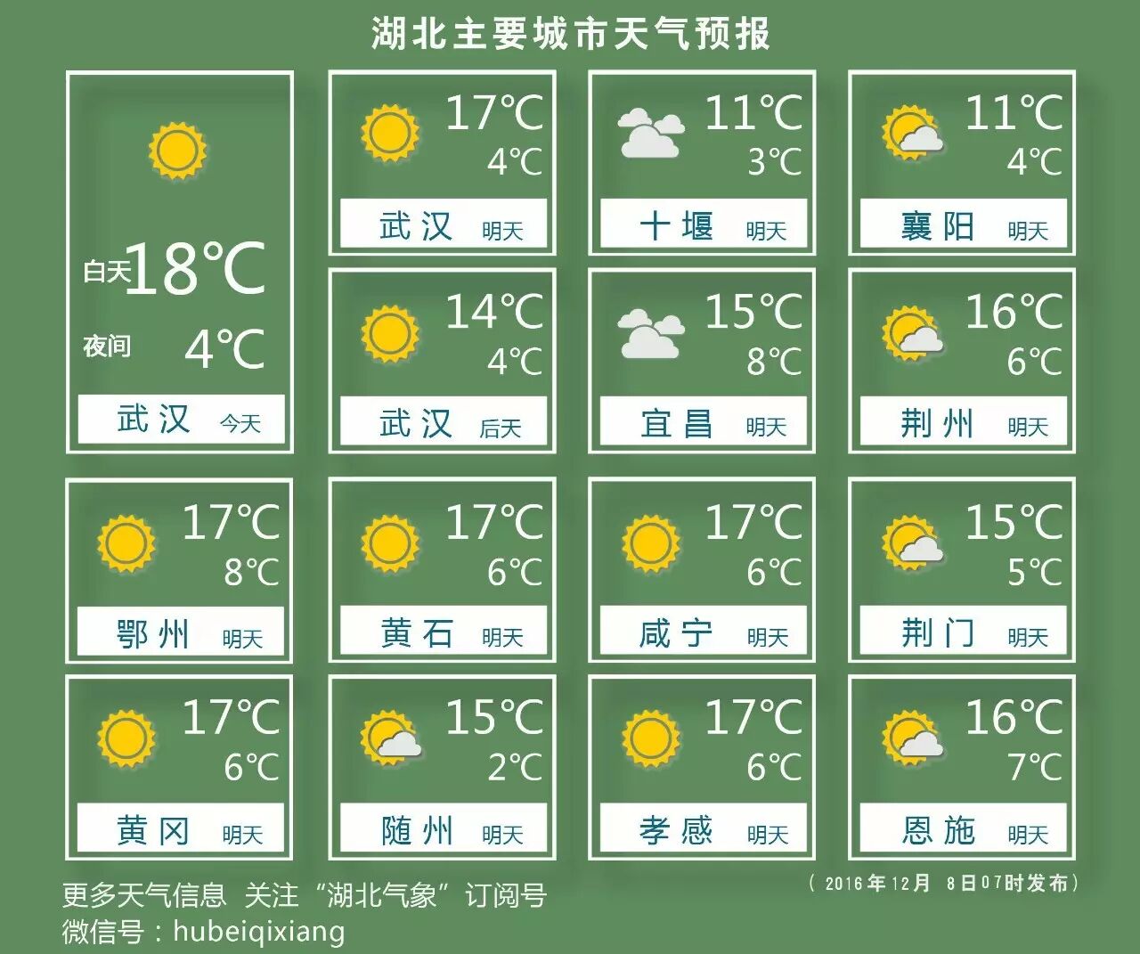 最高气温:鄂西北11-13℃;其他地区14-17℃