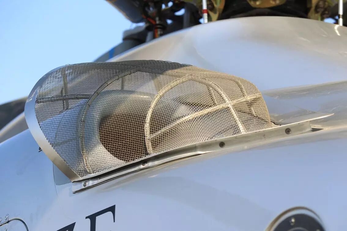 直升机由于起降特性,旋翼会产生强大的下降气流,气流会吹动地面的尘土杂物甚至石子,一旦这些杂物被吸金直升机的发动机,轻则影响寿命,重则造成发动机损毁。因此,直升机发动机的进气道前端一般会有金属网状防护罩过滤装置。