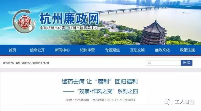 时近年底,杭州市纪委主办的杭州廉政网刊文《猛药去疴 让“腐利”回归福利》指出,福利不可滥发,违规发放津补贴或福利,是一条不可触碰的红线。