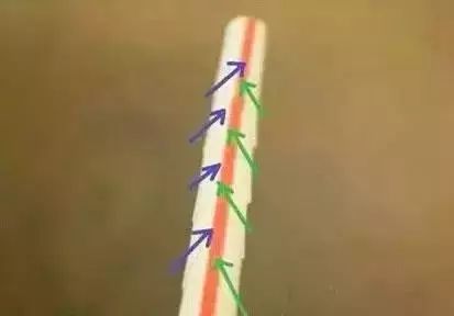 2、按照下图箭头将吸管左右两边斜着错开剪。注意:千万别把吸管剪断。