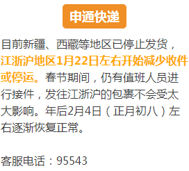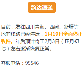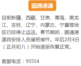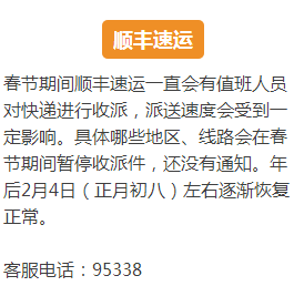 小编为大家整理了各大快递春节期间的运作情况,还有快递的客服电话,最近要网上买年货、快递寄东西的小伙伴看好咯!