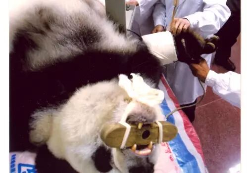 2002年7月,“巴斯”因血压高出正常值两倍、鼻黏膜血管破裂造成大出血,昏迷了整整一周。在它的“御用医疗团队”的精心治疗下重获新生。