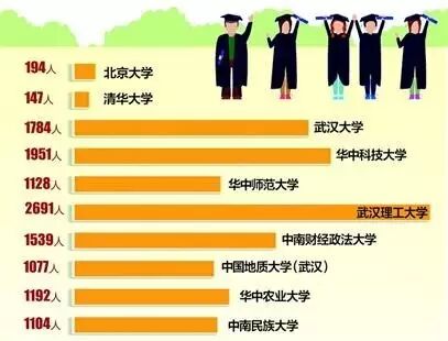 今年,北京大学在湖北省录取194人,比去年多32人;清华大学录取147人,比去年多7人。在汉8所部委属高校今年在鄂招生计划10857个,比去年多12个,实际录取1.24多万人,比公布的计划多录取1600多人。