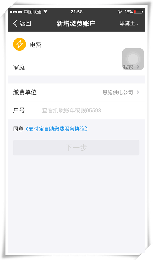 支付宝交费操作流程 支付宝搜索“国网湖北省电力公司”服务窗,添加户号,录入录入用电户号和初始查询密码6个8,确认绑定即可交费或查询电量电费情况。支付宝支持绑定代扣电费,选择电费代扣,确认办理后即可成功代扣电费。 1支付宝搜索“国网湖北省电力公司” 2点击进入界面 3 立即缴费,点击进入界面,输入相关信息缴费 4电费代扣,点击进入界面,输入户号绑定即可