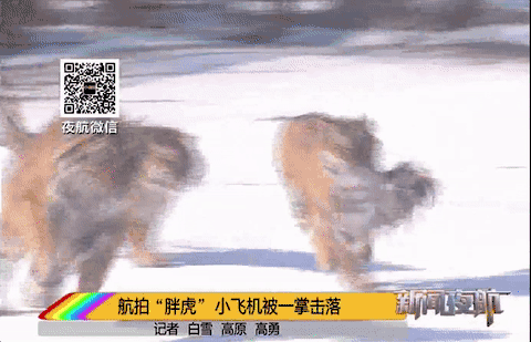 黑龙江广播电视台《新闻夜航》出动航拍器,用第一视角近距离拍摄萌萌的“胖虎”。航拍器镜头下,老虎们在雪地上闲庭信步,一只两三岁的老虎正对着镜头奔跑,忽然,一只大爪子在镜头前一闪而过,整个镜头摇晃了几下,然后,就没有然后了……