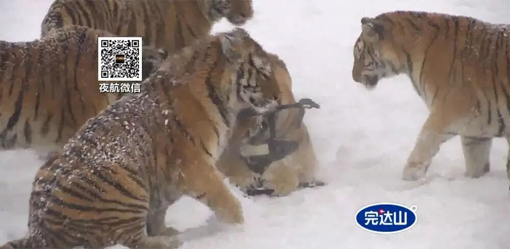 对比之前拍摄的老虎捕食的画面,它们肯定是把航拍小飞机当成食物老母鸡了。那些说胖虎们懒的谣言在此刻全被推翻,因为馋战胜了懒。