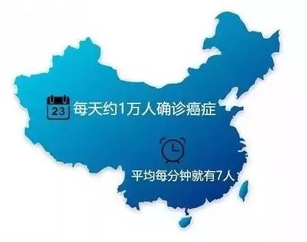 ▼我国每天约有1万人确诊癌症,相当于平均每7分钟就有一个人得癌症