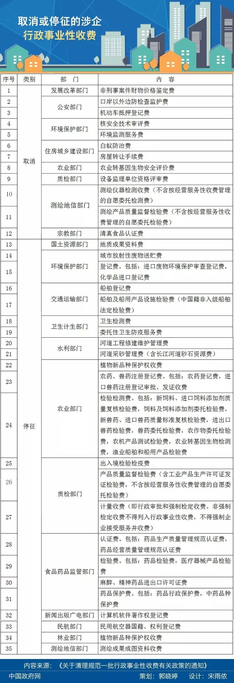 为切实减轻企业和个人负担,促进实体经济发展,近日,经国务院批准,财政部下发《关于清理规范一批行政事业性收费有关政策的通知》。通知指出,自2017年4月1日起,取消或停征41项中央设立的行政事业性收费。这些收费项目都有哪些?与你有关的是哪些?快来看看吧。 来源/中国政府网 责编/孙跃 编辑/黄頔芳