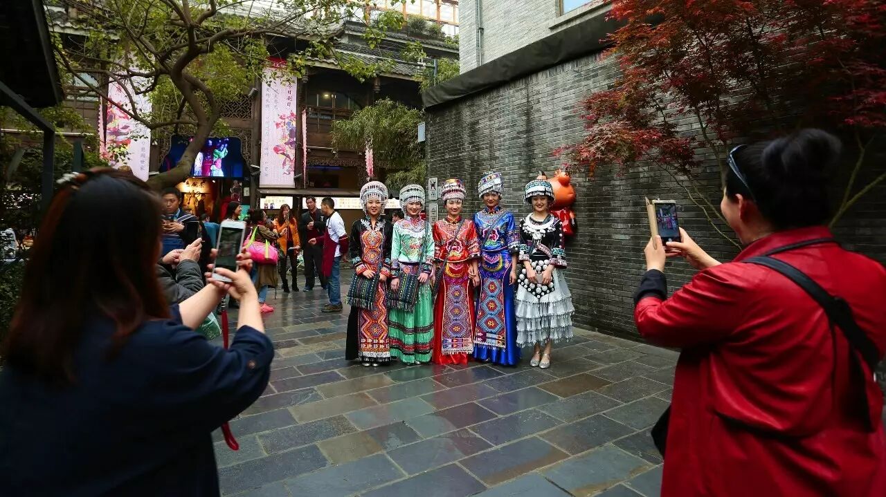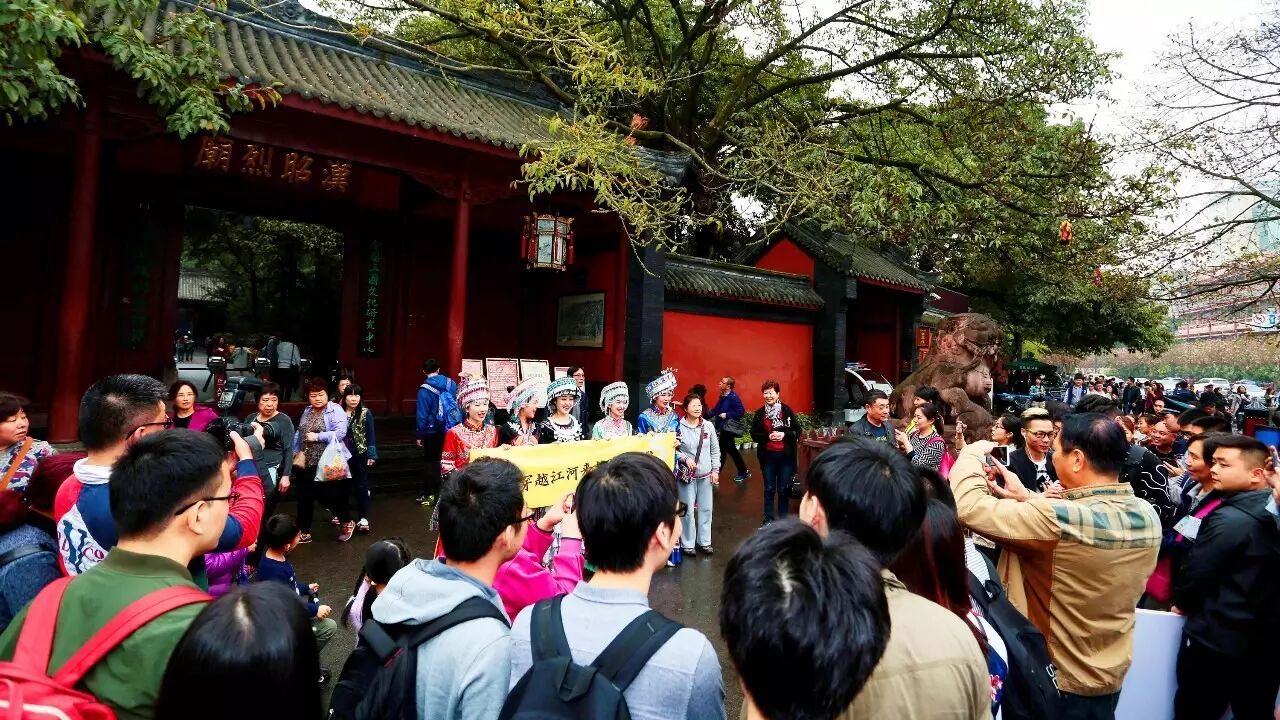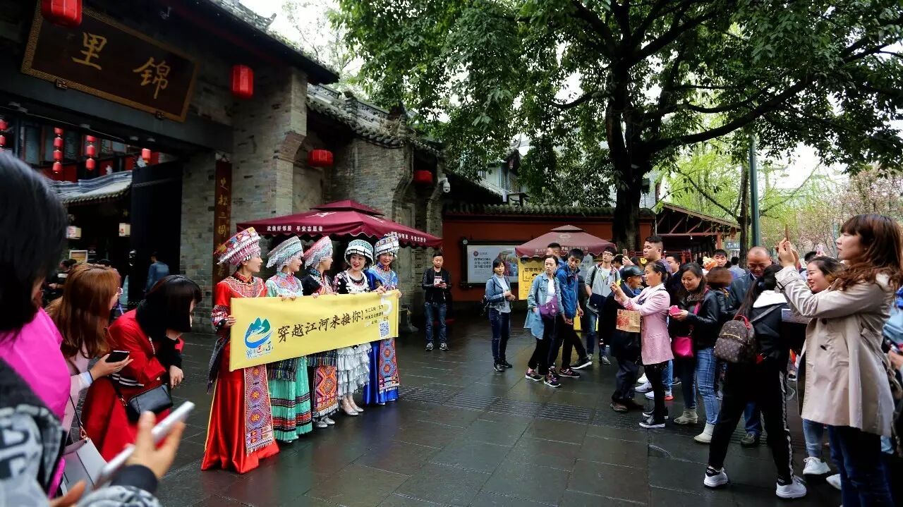 即便没到现场,你也可以试想,当一众土家美女着一袭民族盛装,行走诗意锦里,浪漫宽窄巷子,繁华春熙路,古韵武侯祠,用绚丽的西兰卡普叠映千红万紫,该是多么别具情调的诗意表达!
