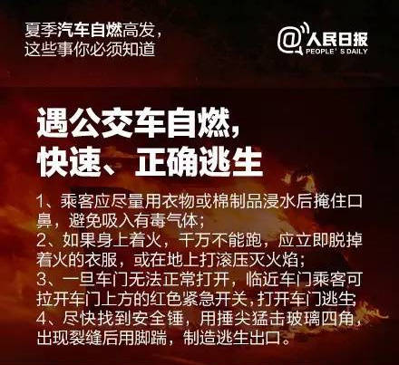 同时告诉乘坐公交出行的朋友,如万一遇到公交自燃,快速、正确的逃生办法如下