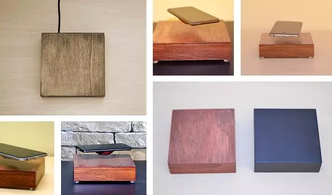 底座是木质材料的,有无线充电和磁力两种功能。充电壳里安装了接收器,能够接收到来自底座的电力。在充电壳背部放上磁铁,磁铁会与底座的磁力相感 应,让手机悬浮在空中。AR Designs称OvRcharge的磁力可以支撑600克的物体,所以轻便点儿的平板电脑也是可以充的哈。