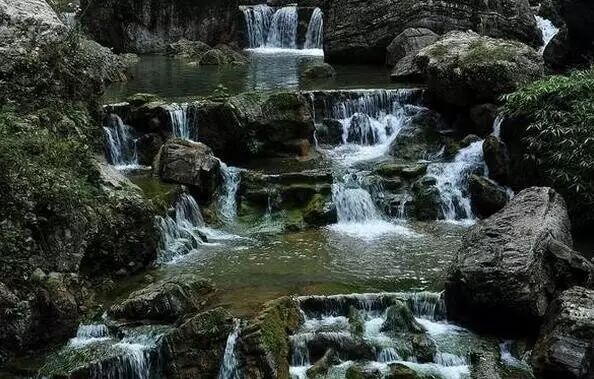 九龙瀑位于湖北省郧县大柳乡余粮村一组到南化塘镇青岩村七组之间群山之中,方圆十几公里人迹罕至。