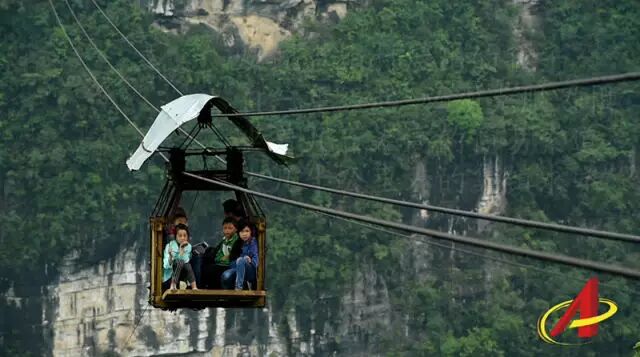 420多米高,700多米长的索道,为了上学,爷孙俩每天要坐两次。