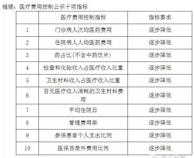 三是建立医疗费用指标公示制度,选取门诊病人次均医药费用、住院病人人均医药费用、药占比、平均住院日、参保患者个人支出比例等十项医疗费用指标对全省所有二级以上公立医院进行定期公示。