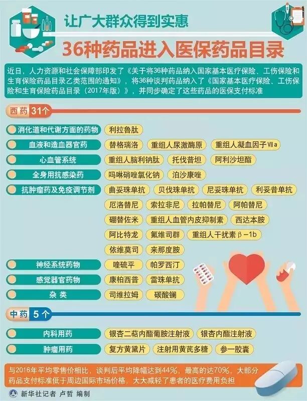 人社部日前公布36种药品进入医保目录后的价格谈判结果,原价两万多一支的抗癌药赫赛汀降到7600元,多种进口药品价格均不同程度下降。
