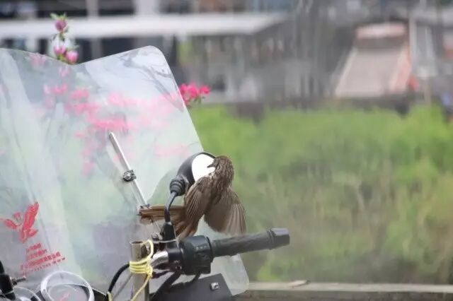 通过镜头我们看到:这位爱臭美的小家伙停留在一辆摩托车反光镜上,模样搞怪、神态有趣,看到镜中的自己,小鸟还不时歪头侧看凝视,上下来回跳动,被镜子里面漂亮可爱的自己深深吸引住了。