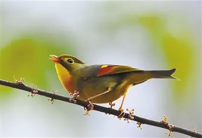 羽色艳丽、鸣声婉转的红嘴相思鸟▼