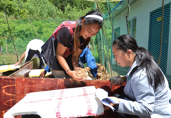 9月1日,咸丰县唐崖镇邓家沟村贫困户正围在装满鸡苗的货车旁等候领取扶贫鸡苗。 为深入推进产业扶贫,恩施州电视台驻村工作组切实结合贫困户家庭实际情况,因户施策,鼓励贫困户发展家禽养殖,拓宽致富门路。 来源:恩施日报 (责任编辑 郜月飞)