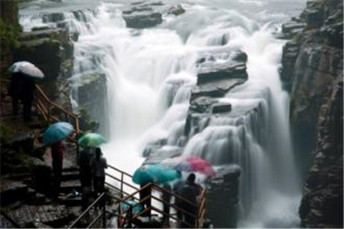 山水是五龙山风景的灵魂,晴天有云海观日,雨天可看天然喷泉。云雾时聚时散,时浓时淡,变化多端,青峰以云雾之魂而耸立,云雾依山峰之神韵而流淌,相互映衬,美不胜收,让人流连忘返。