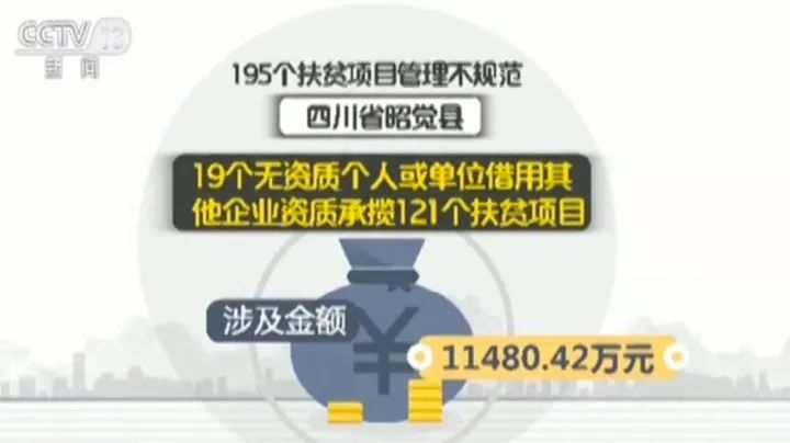 四川省昭觉县的19个无资质个人或单位借用其他企业资质承揽121个扶贫项目,涉及金额1亿多元。