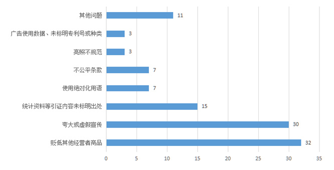 11月4日至11月18日,武汉市工商局对重点网络交易平台(天猫、淘宝、京东、唯品会、卷皮网、中百网、武商网等),以及相关行业网店,开展了信息在线监测,实际监测页面样本1139个,发现问题页面108个。排名前三的问题依次为:贬低其他经营者的商品(32个),夸大或虚假宣传(30个),统计资料等引证内容未标明出处(18个)。