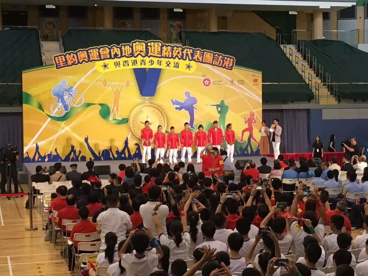 代表团运动员同香港的青少年代表们通过座谈形式分享各自在训练和比赛时候的一些心路历程。奥运精英代表团成员还同香港青少年代表一同参加娱乐游戏。