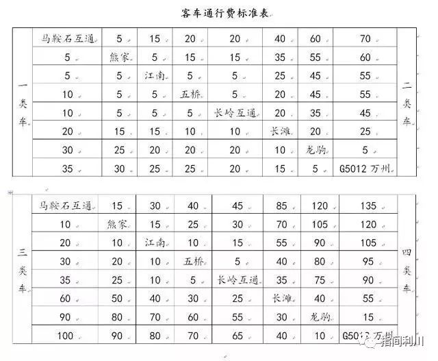 在利万高速从G5012万州站进至利川西站出,从G5012万州站进至利川齐岳山站出的7座(含)以下小型客车由利川市政府统一支付小车通行费。