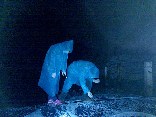 傍晚时,蝙蝠会排便。所以,在白天,研究人员就悄悄进洞,在蝙蝠群下方铺好塑料薄膜,夜里或第二天来收集薄膜上的蝙蝠粪便,带回实验室冻存。