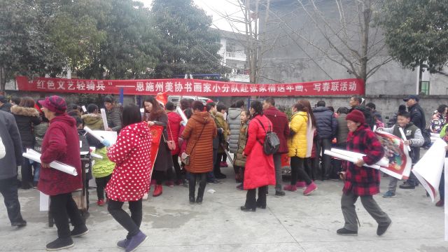 云上恩施报道(融媒体记者 向尚 实习生 满博文)1月23号,州委宣传部组织“红色文艺轻骑兵”小分队走进恩施市白杨坪镇张家槽村,开展“情系乡村、欢乐送基层” 文艺演出活动。与此同时,来自州美术家协会、州戏剧家协会的书法家和演职人员现场书写春联,送年画,为乡亲们送上了一场精彩的“文化惠民”大餐。