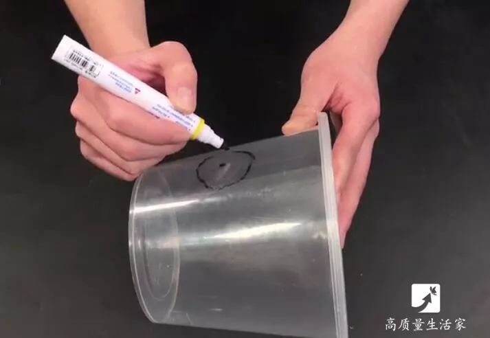 1、先用黑色的马克笔在盒身中间的部位画出圆形,直径大概在3厘米左右就可以了。