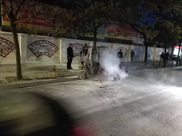 当日晚20时许,建始县公安局业州城区派出所接到群众报警,称县城业州大道有一辆三轮摩托车起火了,请迅速处理。考虑到业州大道系县城人流、车流均十分密集的主干道,值班民警立即组织警力带上灭火器材,在2分钟之内即赶至事发地点。