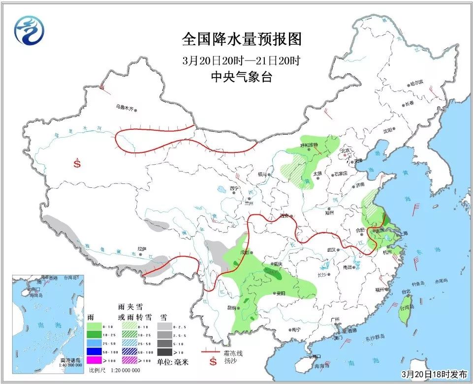 21日至23日,黄淮东南部、江淮东部等地有小到中雨或雨夹雪,华北中南部部分地区有轻度霾,局地短时中度霾。