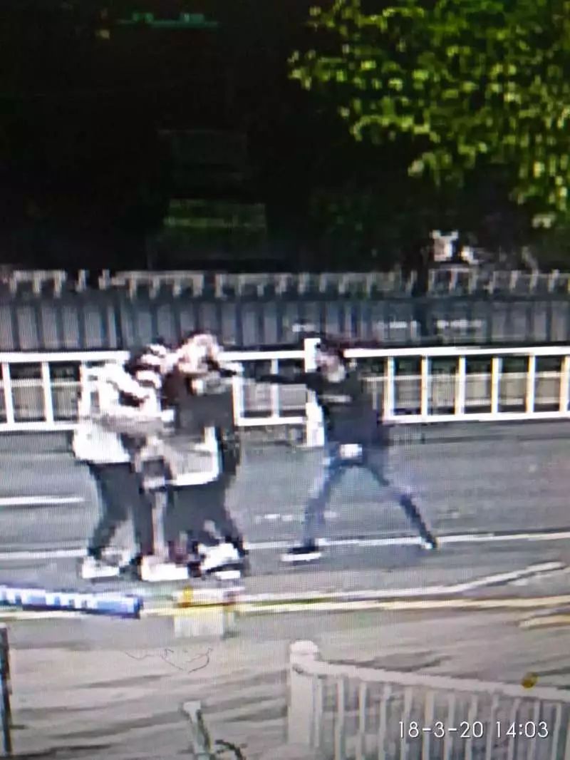 玉泉派出所的值班民警是接到这个报警来的,可是到了现场,却没看到“保安在围殴几个小姐姐”,只看到三个姑娘在围着小伙子拉扯,小伙子左挡右挡,没有还手之力。