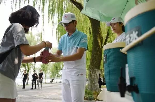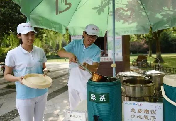 事实上,这两天如果你经过西湖边,会发现“小青荷”们的微笑已经绽放在身边。湖畔的西湖志愿服务微笑亭里茶香四溢,来自浙江大学的志愿者王鸿阳正冒着高温,热情地为过往的游客服务。