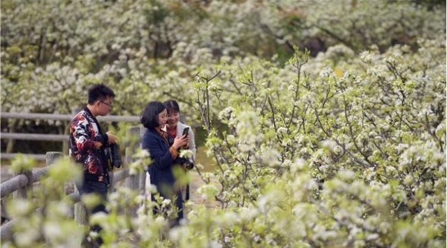 云上恩施讯 (宣恩台记者 贺敏 通讯员 王俊 邵林)万物复苏,百花绽蕊,宣恩县椒园镇黄坪村成片梨花勾勒出一幅大自然美丽的画卷,吸引了众多游客前来观赏梨园美景。 春天赏花,秋天品梨,黄坪村是宣恩县的一处观光农业旅游景区。 该村以黄金梨为特色主导产业,采取农旅结合方式举办“梨花节”“黄金梨采摘节”等活动吸引人气,乡村旅游和产业发展让老百姓生活越过越美好。 来源:云上恩施 责任编辑:谭晓慧 主编:龙梅