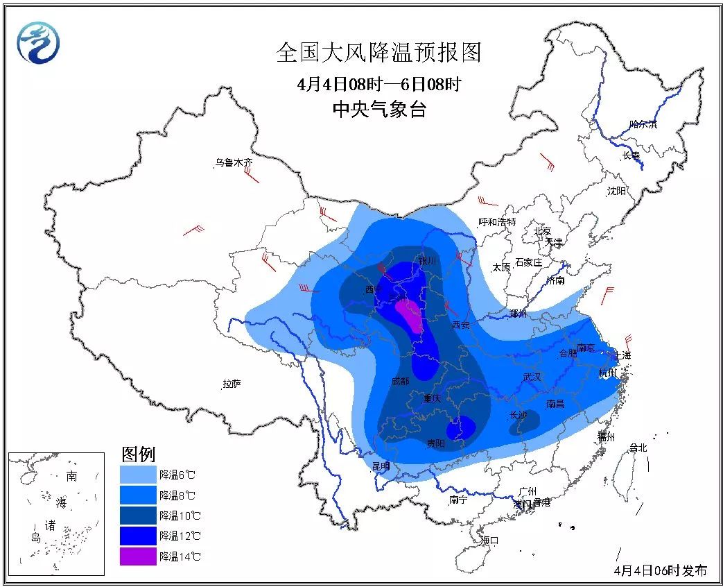 今明两天,全国大部将有6-10℃降温天气,局地降温可达12℃。内蒙古、山西、河北和北京等地有大雪或雨夹雪,局地暴雪。
