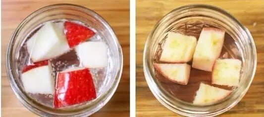 苹果、梨、土豆等蔬果去皮后容易氧化变色,若削皮后将它们用淡盐水冲洗一下,即可防止变色。