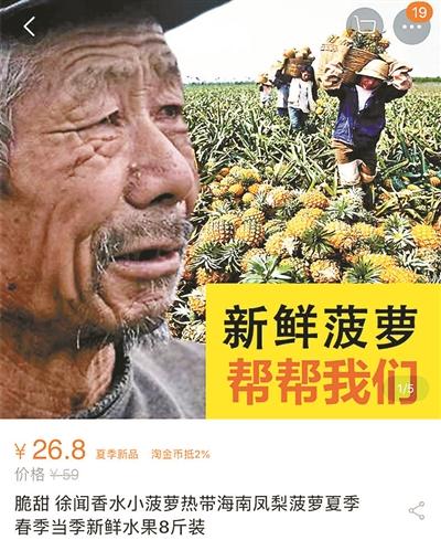 5月9日,北青报报道了网络电商以“滞销”为名销售水果一事,多个店家使用同一位老人照片,不同的是,宣传图中老人形象不变,滞销的商品则被换成了苹果、鲜笋、菠萝等多种水果。这位老人被称为“滞销大爷”,店家使用悲情牌套路销售商品也引发大量关注。