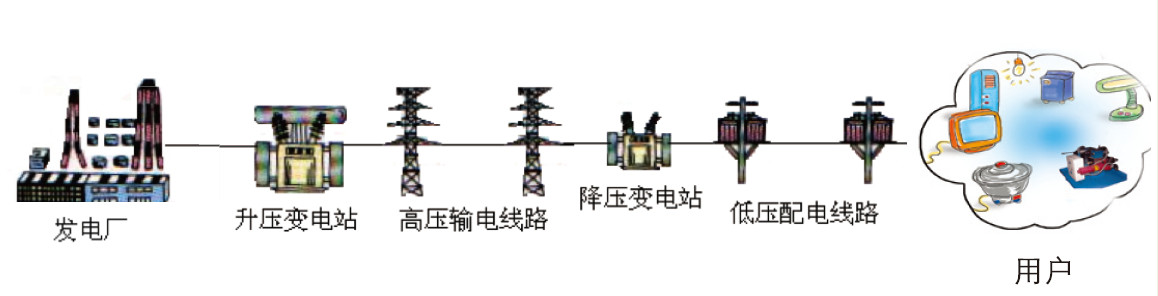 生活中我们常见的高压线变电站大多属于交流输变电设施,为高效、高质量的将电能从远方的发电厂输送到用户,电能必须经历一个“升压-输送-降压-输送”的过程。
