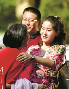图为:送考老师(右一)拥抱鼓励即将走进考场的学生楚天都市报记者王永胜摄于武汉二中考点