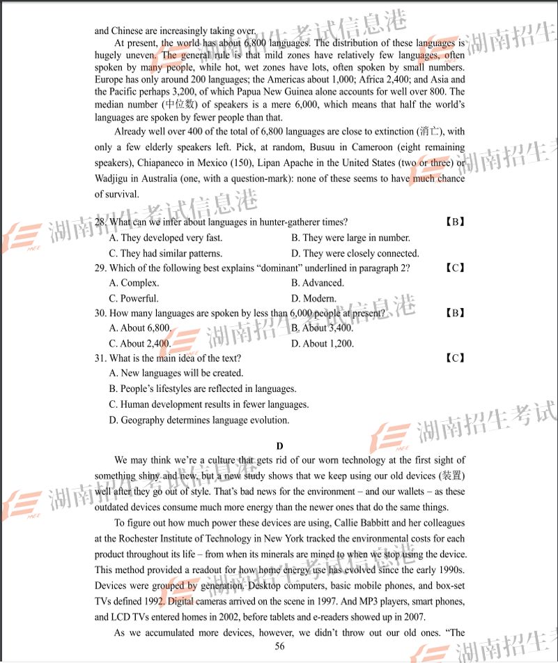 湖北使用全国卷I (适用地区:安徽、湖北、福建、湖南、山西、河北、江西、广东、河南、山东) 语文 数学(文) 数学(理) 英语 文综 理综 (答案仅供参考) 试卷只有标准的正确答案,但是人生却有无限的可能,加油! 来源:长江云 http://m.hbtv.com.cn/p/1408032.html 责任编辑:朱晓涵 主编:龙梅
