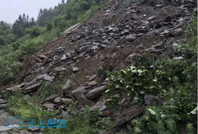 6月19日,受暴雨洪涝影响,宣恩县长潭河侗族乡通村通组公路后河村路段发生山体滑坡,公路两侧山体滑坡严重,此处交通已经完全中断,并可能随时发生次生灾害。 目前,宣恩县相关部门正在加紧排险,因路段附近可能随时发生山体滑坡、滚石等危险,请过往车辆以及行人绕行,且务必注意安全。 来源:云上恩施宣恩台通联 记者 何鸿辉 瞿亿英 通讯员 夏涛 责任编辑:吴佳翼 主编:龙梅