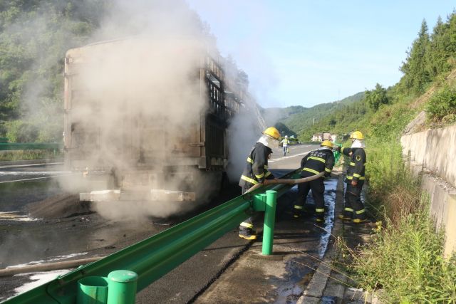 2018年6月28日6时44分,宣恩大队接到指挥中心接到报警称:宣恩县椒园镇恩来高速往恩施至宣恩方向(420公里+420米处)一辆大型半挂货车自燃起火。接到报警后,中队立即出动2辆消防车14名消防官兵赶往现场。